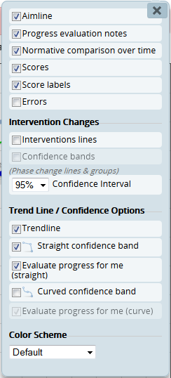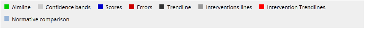 An easy to read key is provided to indicate what is depicted on the graph. Basic and Advanced Analytics are provided to assist in the understanding and write up of results. The information provided include a Goal statement, a Growth statement, and overall evaluative statement, as well as several indicators of attainment relative to the goal. The percentage of the Goal Attained refers to the performance of the student relative to the goal at the time of initial measurement, and at the point of the Ordinary Least Squares Regression Best Fit line at the point of final assessment, when interventions are present this metric is also available at the terminal point of each intervention (fit/goal). The Percent of Normative Performance Attained refers to the performance of the student relative to the normative information entered into the assessment schedule.